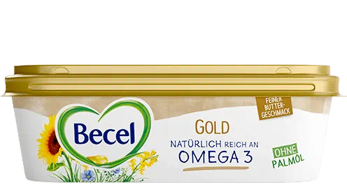 Durch die Kombination von Raps-, Sonnenblumen- und Leinöl enthält Becel Gold Omega 3 und 6 Fettsäuren und weniger gesättigte Fettsäuren als Butter.