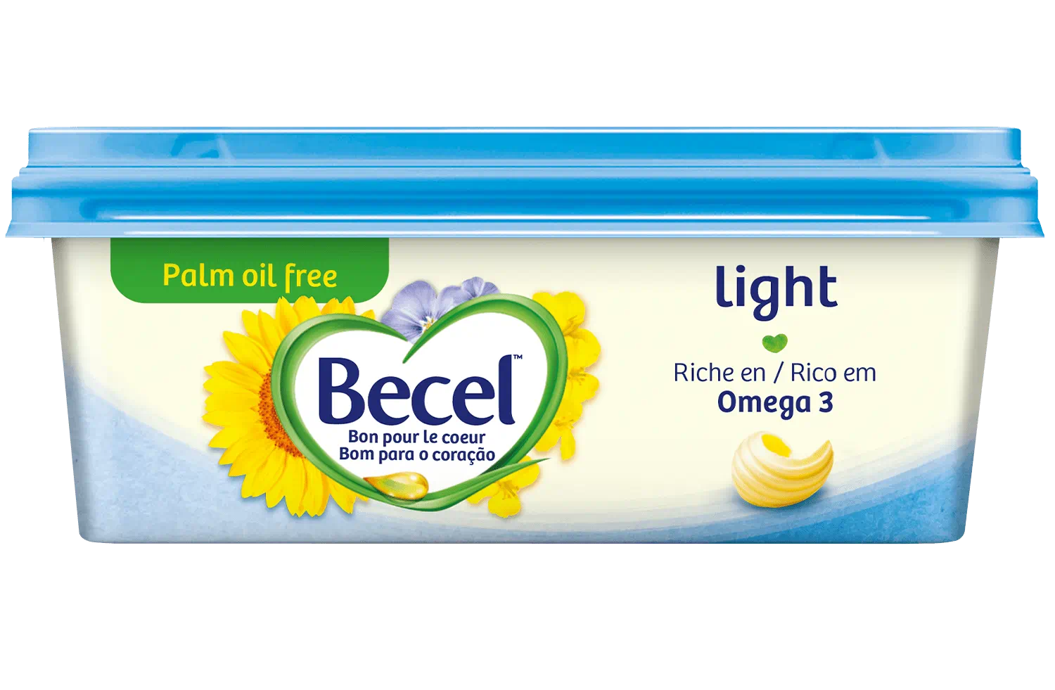 Becel Light est, avec 27 kcal par portion (10 g), le produit le plus léger de la gamme Becel à tartiner. Becel Light est idéal pour ceux qui veulent consommer moins de calories sans négliger leurs apports en bons acides gras insaturés. Becel Light contient 70 % de graisses saturées en moins que le beurre. Becel Light est un produit avec 28% d'huile végétales dont la moitié d'acides gras oméga 3 et oméga 6. Les oméga 3 et 6 sont bons pour le coeur et les artères et aident de maintenir un taux de cholestérol normal dans le sang. L'apport quotidien recommandé est de 2 g d'oméga 3 et de 10 g d'oméga 6. Becel Light sans huile de palme. Notre gamme de produits répond à des besoins diététiques divers.
