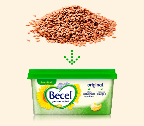 Ontdek met Becel de kracht van plantaardig. Wist u bijvoorbeeld dat Becel wordt gemaakt van plantaardige oliën, die rijk zijn aan belangrijke voedingsstoffen? De oliën in Becel bevatten van nature Omega 3 en 6 die goed zijn voor het hart. Ze dragen bij aan het behoud van een gezond cholesterolgehalte in het bloed. Uiteraard is hierbij een gevarieerd, evenwichtig voedingspatroon en een gezonde levensstijl van belang. Net als de benodigde hoeveelheid van Becel en het vereiste consumptiepatroon. Niet alleen draagt Becel dan bij aan een gezond en fit leven. Door meer plantaardig te eten draagt u ook bij aan vermindering van de CO2-uitstoot. Met Becel zet u dus niet alleen uzelf in uw kracht, maar ook het milieu.