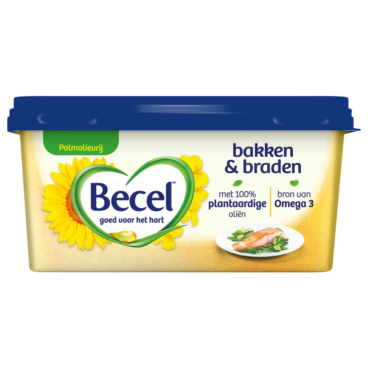 Becel Bakken en Braden (kuipje) is geschikt voor mensen die op de klassieke manier vlees, vis of groenten willen bakken of braden. Het is net als de vloeibare variant gemaakt met een mix van zonnebloem-, lijnzaad- en koolzaadolie die omega 3 en omega 6 vetzuren bevatten die goed zijn voor hart en bloedvaten. Omega 3 en omega 6 dragen bij tot de instandhouding van een normaal cholesterolgehalte in het bloed. De benodigde dagelijkse inname is 2g omega 3 en 10g omega 6 per dag. Becel Bakken en Braden in kuipje spat niet en bakt mooi bruin aan. Becel Bakken en Braden in kuipje bevat 55% minder verzadigd vet dan roomboter. Becel Bakken en Braden is geheel palmolievrij. Ons assortiment sluit aan op uiteenlopende voedingskundige behoeften.