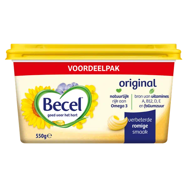 Op de achtergrond blijven we bij Becel zoeken naar geschikte alternatieven voor plastic, waarbij we rekening houden met alle aspecten van duurzaamheid. Dus niet alleen de afbreekbaarheid van het materiaal, maar ook het gewicht ervan of de energie die nodig is om de verpakking te produceren. Zodra we duurzamer kunnen, zullen we ook duurzamer handelen.