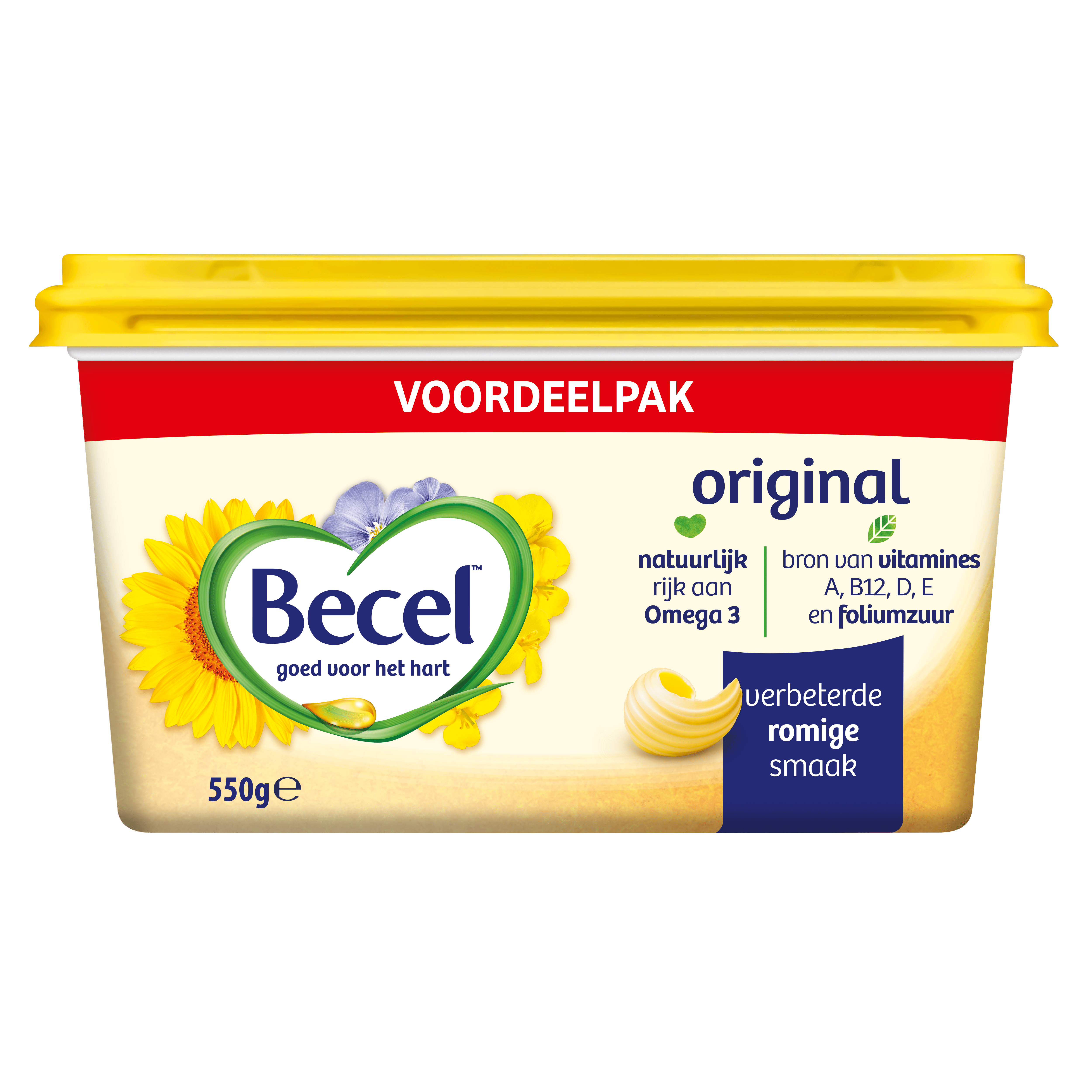 De unieke mix van zonnebloem-, lijnzaad- en koolzaadolie in Becel is van nature rijk aan Omega 3 en bevat van nature Omega 6 . Dat draagt bij aan het behoud van een gezond cholesterolgehalte in het bloed. En daarom is Becel goed voor het hart.Vier besmeerde boterhammen met Becel Original (20g) leveren een belangrijke bijdrage aan de hiervoor benodigde dagelijkse hoeveelheid Omega 3 (2g) en Omega 6 (10g).